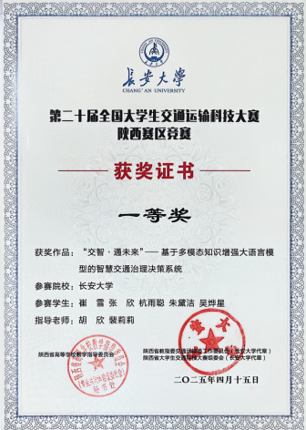 在2025年举办的第二十届全国大学生交通运输科技大赛陕西赛区竞赛中,太阳成集团tyc33455的学生团队凭借出色的表现,荣获省级一等奖。