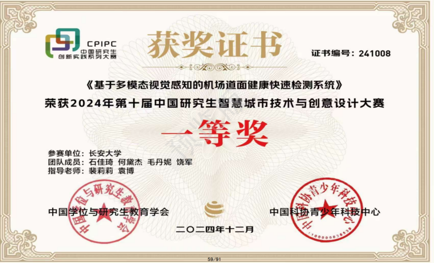 近年来,我院研究生在中国研究生人工智能创新大赛、中国研究生智慧城市技术与创意设计大赛、中国国际大学生创新大赛、全国大学生交通运输科技大赛等学科竞赛中斩获多项国家级、省部级奖项。我院导师指导研究生在CCF-A类、中科院一/二区等期刊上发表多篇高质量论文,指导研究生申报国家发明专利、软件著作权等20余项。